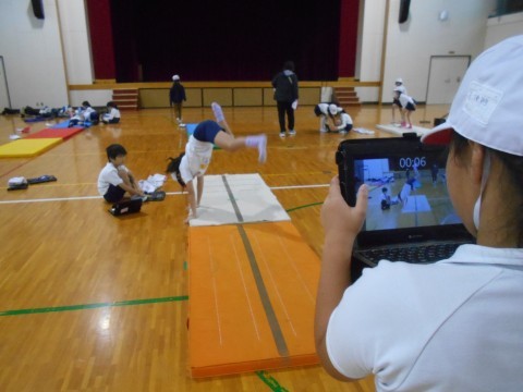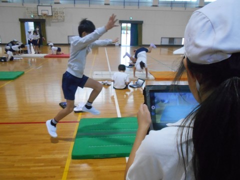 自分の技を自分で観るために,友だちに動画撮影してもらっています。