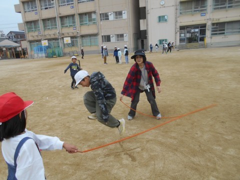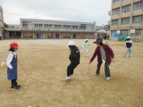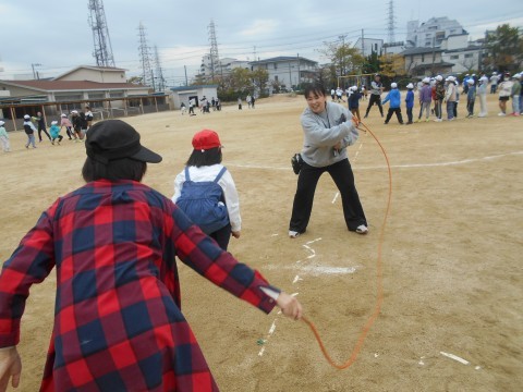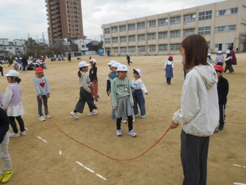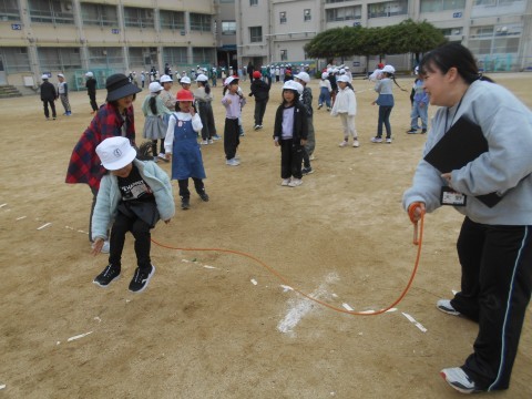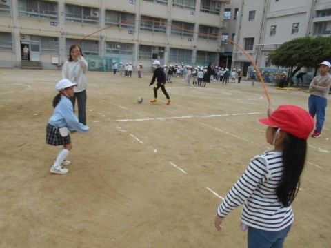 1年生にとっては初めての大なわ会,がんばって跳んでいますね♪