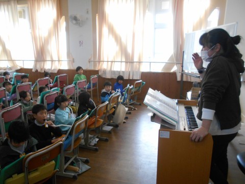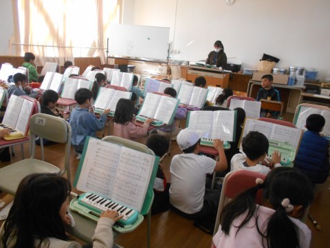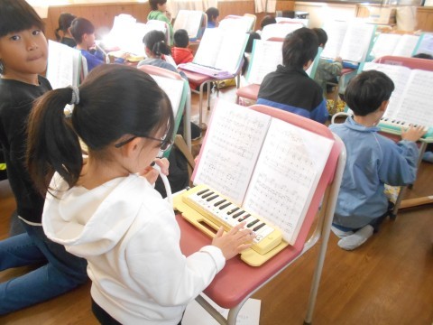 音楽の時間です。鍵盤ハーモニカで合奏練習していました。