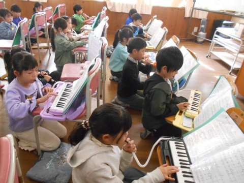 「ミッキーマウスマーチ」に挑戦中… 楽しいハーモニーを奏でてくださいね♪