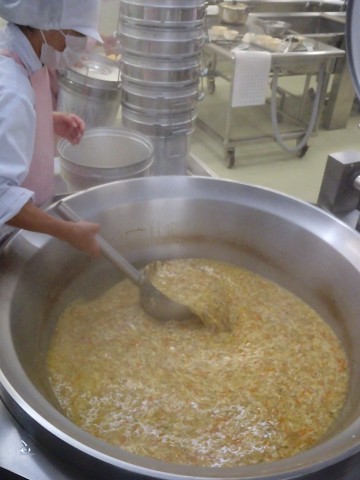 今日の給食は「ごはん,牛乳,中華風たまごとコーンスープ,マーボーはるさめ」です。