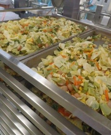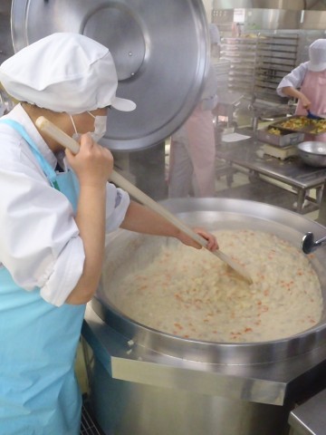今日の給食は「コッペパン,牛乳,ミートボールクリームシチュー,こまつなサラダ」でした。