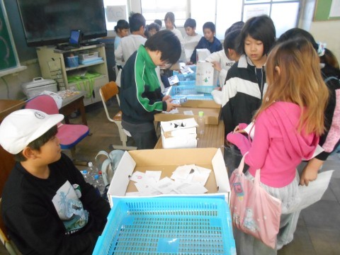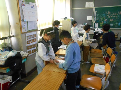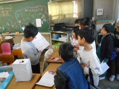 4年生のお店の様子です。机の配置を工夫して,たくさんの人に楽しんでもらえるようにしていました。