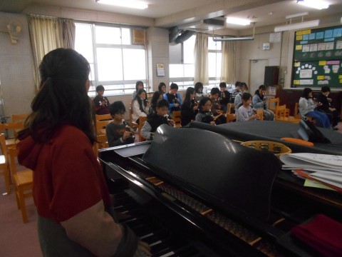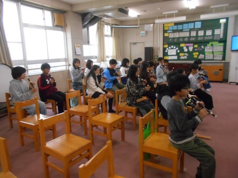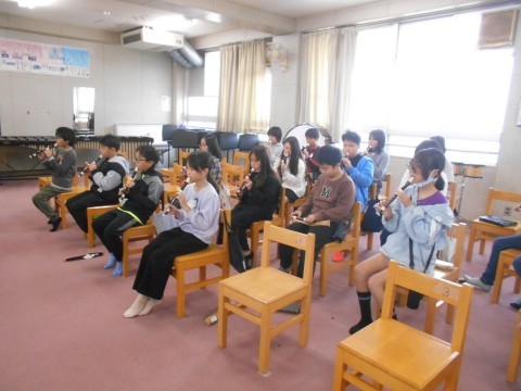 心と体がほぐれた後,リコーダーの練習,開始です♪