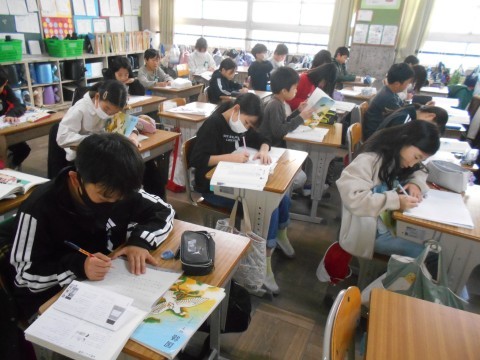 国語の時間です。何やら,みんな真剣にノートに書き込んでいます。