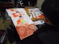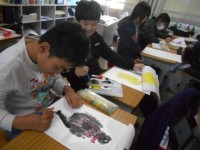図工の時間です。「スチレンはんが」というものに取り組んでいました。