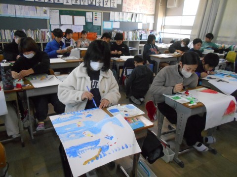 思い思いの色や人物を描いていて,楽しそうです♪