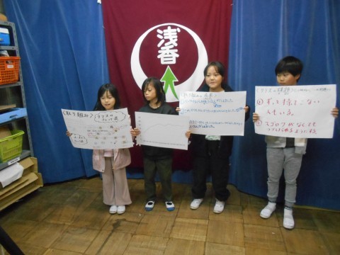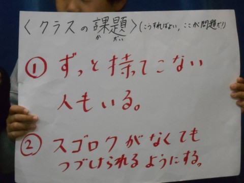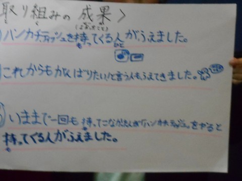 生活目標に関わる取り組みについて3年生が発表してくれました。「身だしなみ」について取り組み,その内容と結果,課題を資料にまとめ伝えてくれていました。