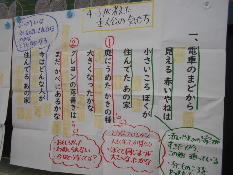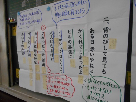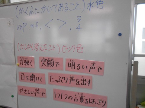 歌詞から考えたことを書き込んだ模造紙が掲示されています。自分たちで考えた工夫だと,より気持ちが込められますね。