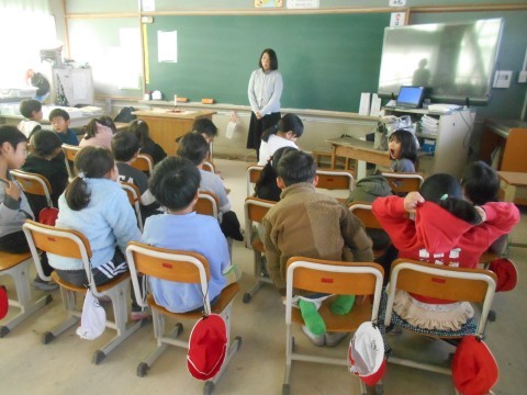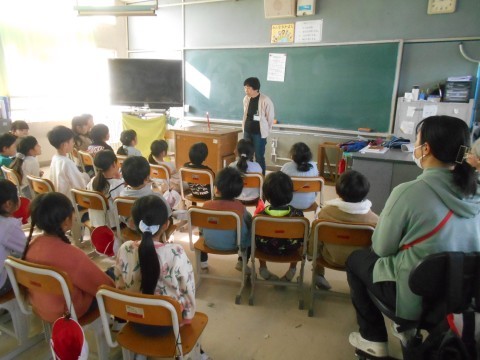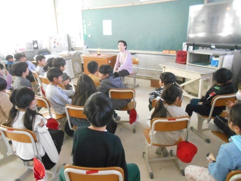 「おはなしどんぐり」さんが来てくれ,1年生に物語を聞かせてくださいました。