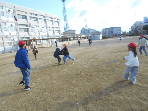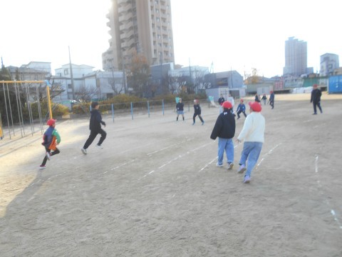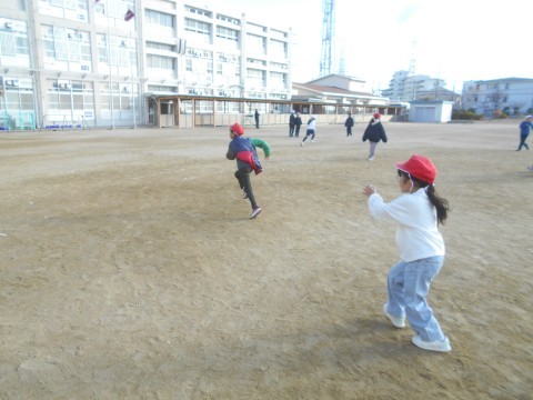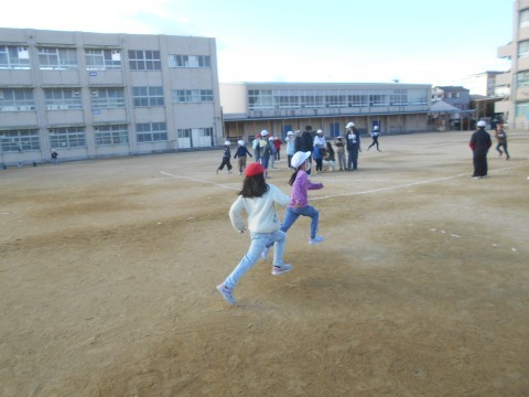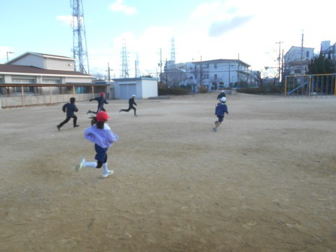 今日はふれあい集会。寒空の下でも,元気に走り回っていました!