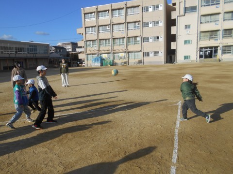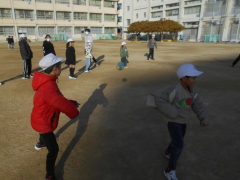 ドッチボールをしているグループもありました。低学年にボールを譲る姿が沢山見られました♪