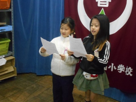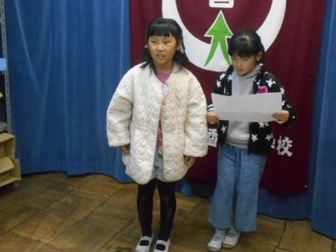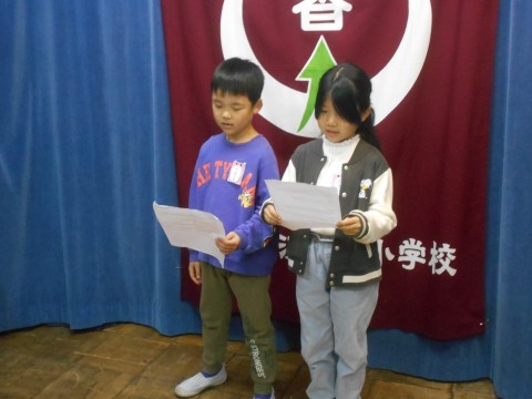 2年生各クラスの代表児童が生活目標の取り組み発表をしてくれました。