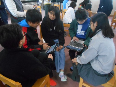 スクラッチで作成した教材がこちら。どれが一番しっくりくる和音か,音を聴いて確認し合っていました♪