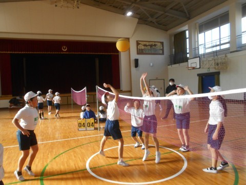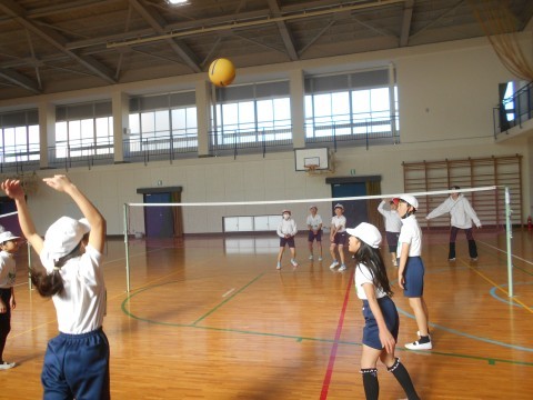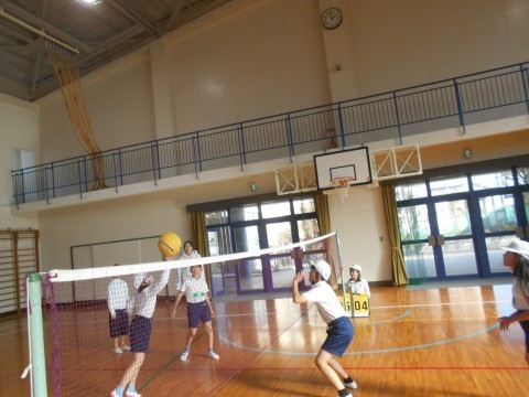 体育館の授業の様子です。ソフトバレーボールに取り組んでいました。