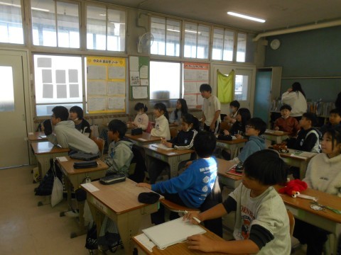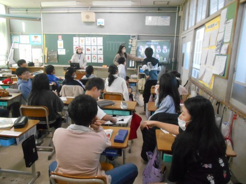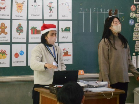 外国語の時間の様子です。サンタとトナカイに扮した先生が盛り上げていました♪