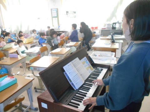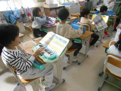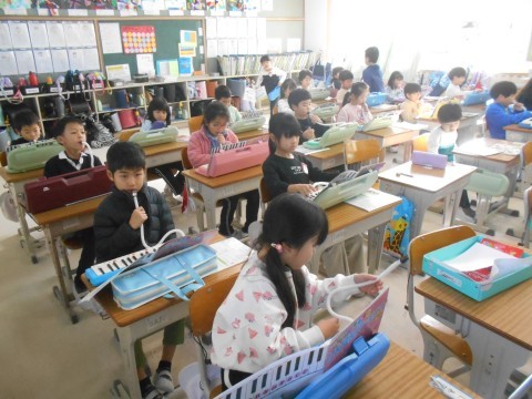 1年生の音楽の時間。鍵盤ハーモニカに取り組んでいました♪