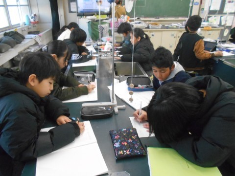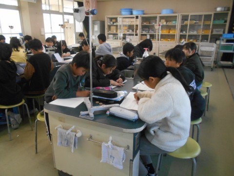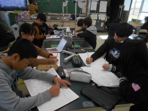 「そろえる条件」「変える条件」をノートに書き込んでいます。実験では,この条件整理が必須です。