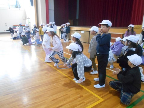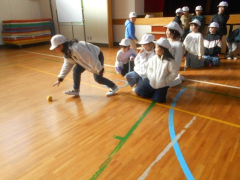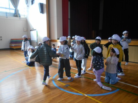 バトンはお手玉を使っています。しっかり手渡ししないと渡りません(笑)