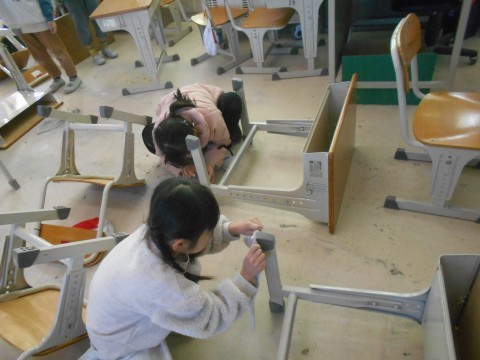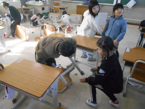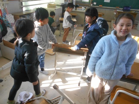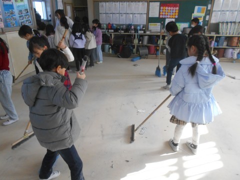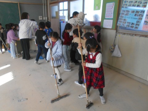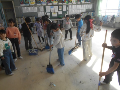 今日は学期終りの大掃除の日。1年生もしっかり自分の教室を綺麗にしていました♪