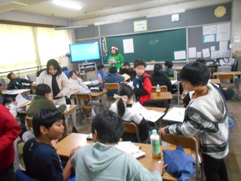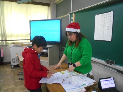 4年生はクリスマスにちなみ,先生たちがお揃いでサンタ帽を被っていました♪