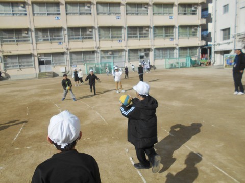ボールを投げ合う様子です♪