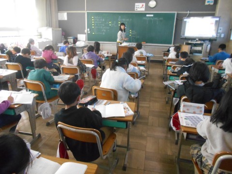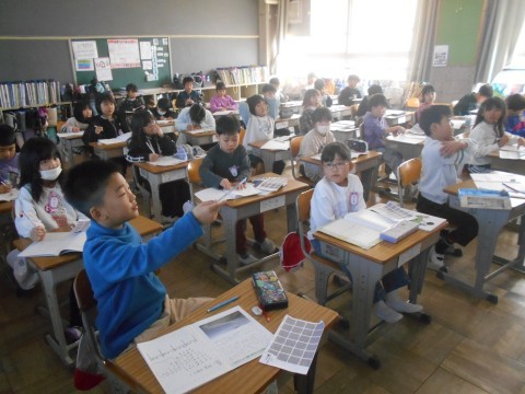始業式の次の日,さっそく授業が始まっています。こちらは2年生の様子です。