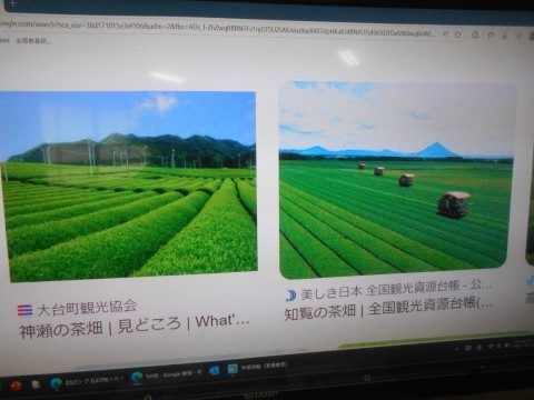 先生が茶畑の画像を映し,「茶」の漢字をイメージしやすくしていました。