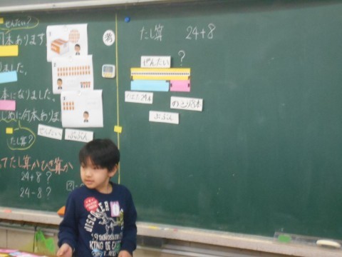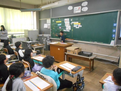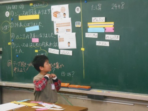 前に出て,自分の考え方を発表しています。伝える力も上手になってきて,すてきでした。