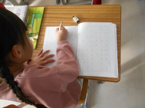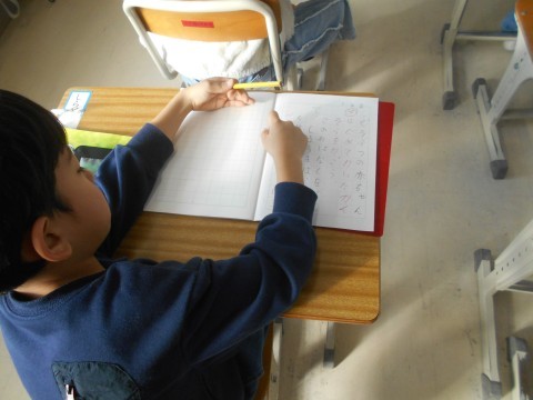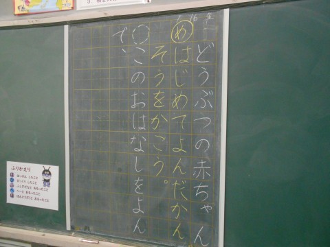国語の時間です。「どうぶつの赤ちゃん」を読んだ初発の感想をノートに書いていました。