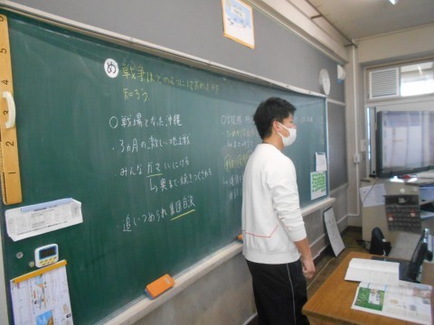 社会の時間です。「ポツダム宣言」のお話。大戦の歴史を学んでいました。