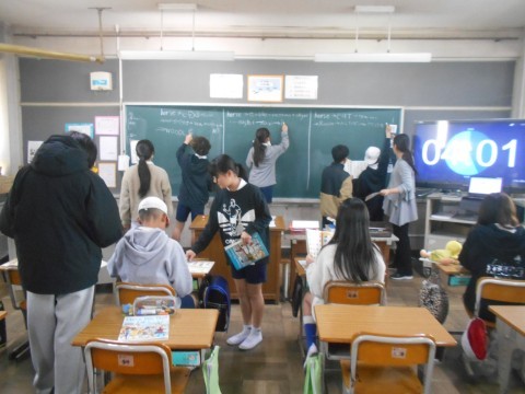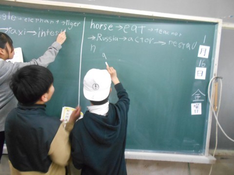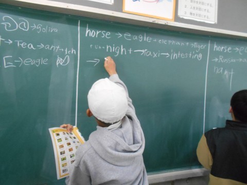 こちらは外国語の時間です。英単語の「アルファベットしり取り」をしていました。