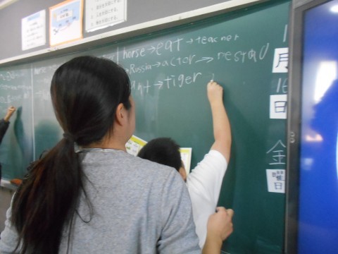 列対抗の模様。応援する声もあれば急かす声も(笑) 制限時間いっぱいまで,しっかり単語を綴ってくださいね♪