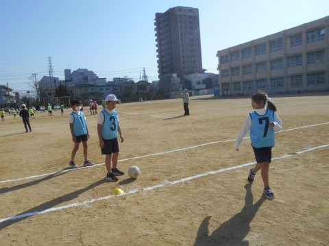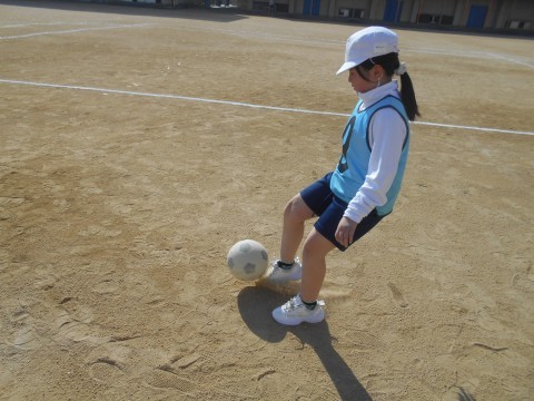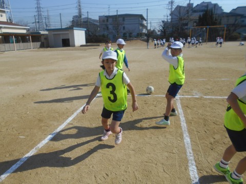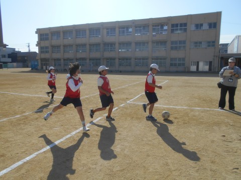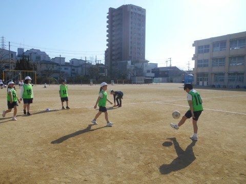チームに分かれてウォーミングアップ中。チームワークを育みましょう♪