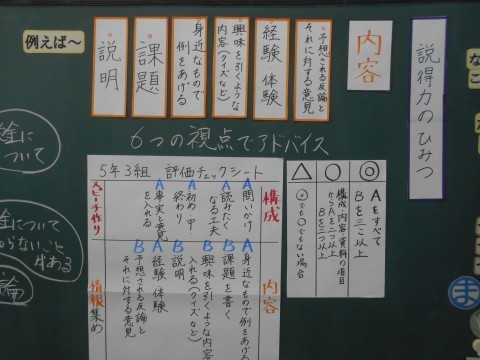 班のメンバーにアドバイスする視点を全員で確認。6つの視点が示されました。上手く取り入れることができるでしょうか♪