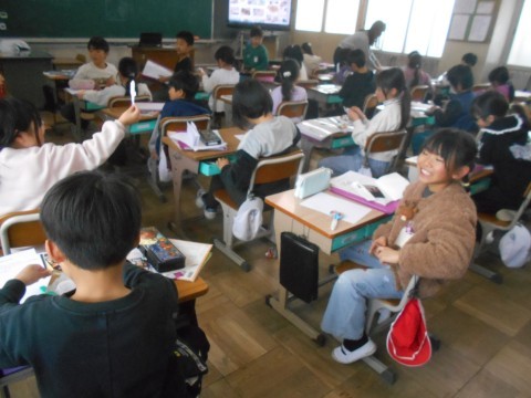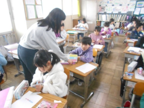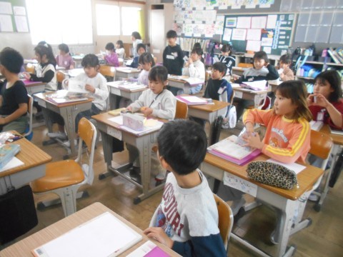 生活科の時間。自分の生まれたころについて,ふり返ってみる学習をしています。