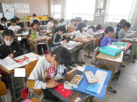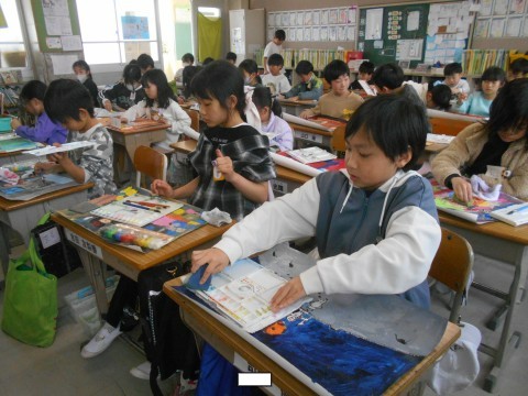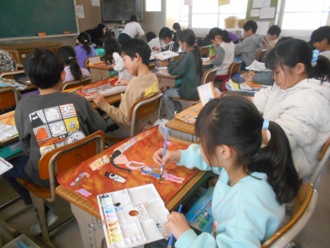 図工の時間です。絵画に取り組んでいました。