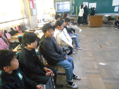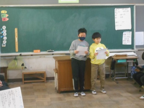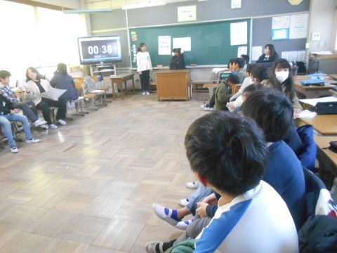 総合の時間。今まで調べてきたことを発表する本番に向けたリハーサルをしていました。