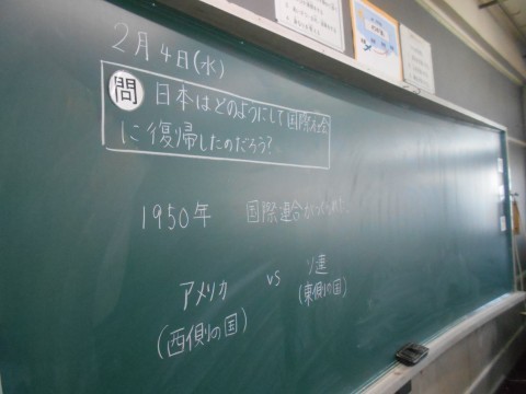 6年生授業の様子 その2 公開日 2026/02/04 更新日 2026/02/04 6年生 戦後「日本はどのようにして国際社会に復帰したのか」,きな臭い今の国際情勢の中,子どもたちにしっかり学んでほしいテーマです。 +3