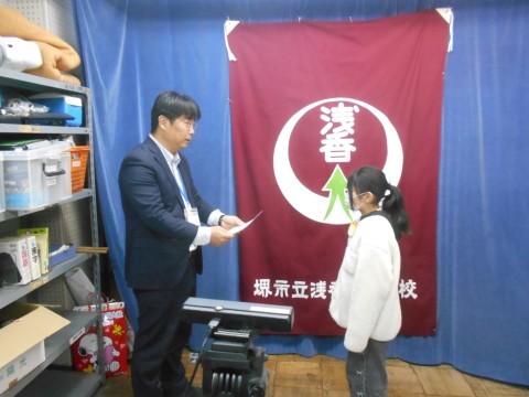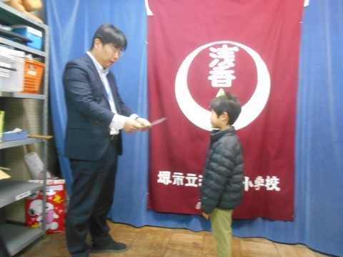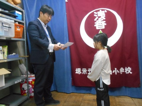 はとぶえコンクールで入賞した児童が表彰されていました。