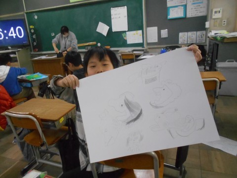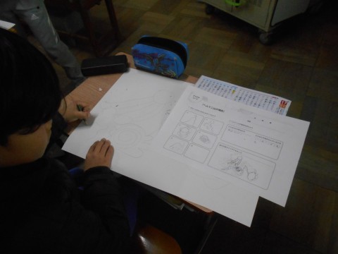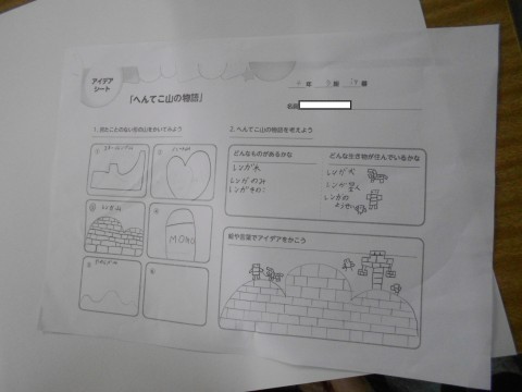 「へんてこ山の物語」というテーマ。構想を練るワークシートをもとに,下絵を描いていたんですね。上手くできていますよ♪