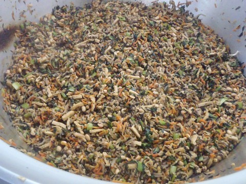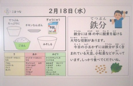 昨日の給食は「ごはん,牛乳,チキン南蛮,みそ汁,鉄分たっぷり煮」でした