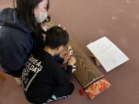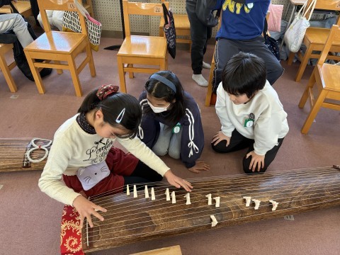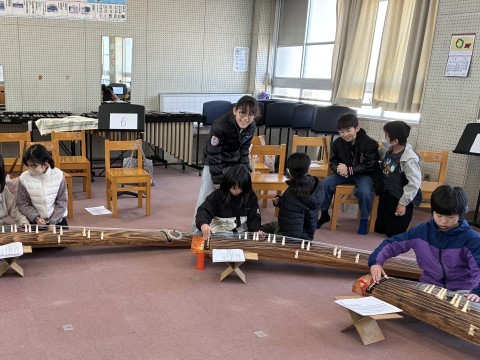 音楽の時間に和楽器の出前授業かありました。みんなで「さくらさくら」を合奏しています。とても上手にどのクラスも演奏出来ました。