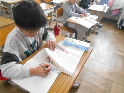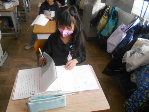 「白い馬」の気持ちを考える際に,教科書の叙述部分に着目。根拠を教科書から探す力を養っています。