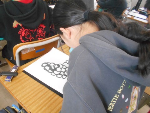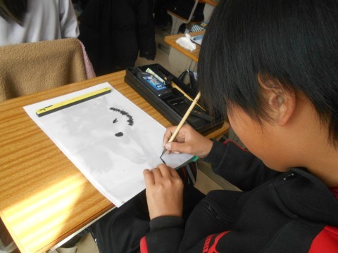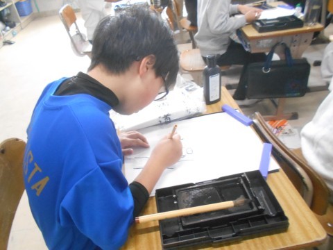 真剣に取り組み中… 普段の習字より集中してる!?