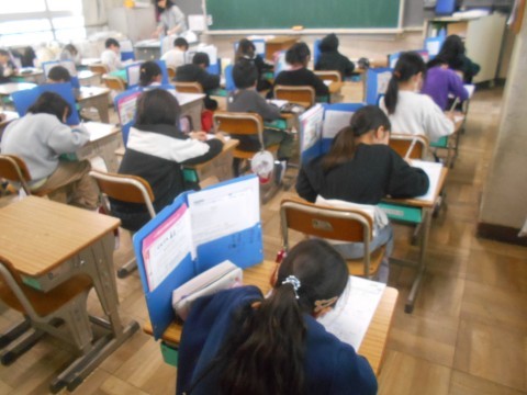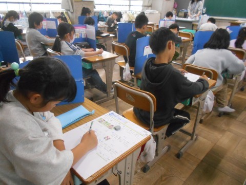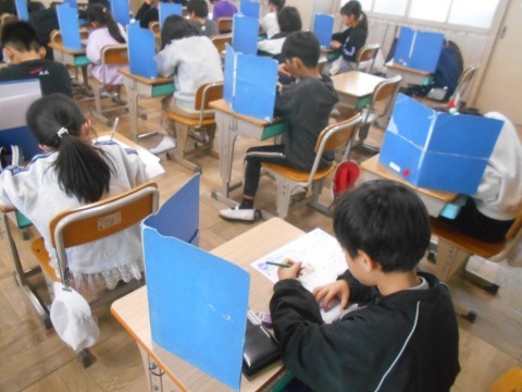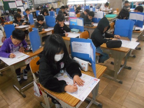 別のクラスでも算数のテスト。学年末のこの時期,学習の総まとめですね♪