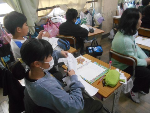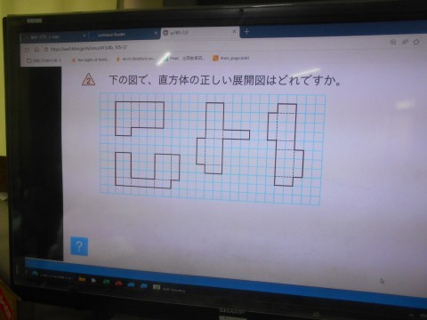 算数の時間です。展開図の学習で,実際に組み立てにチャレンジ中…