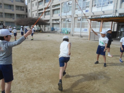 陸上クラブが「八の字跳び」に取り組み中。イェーイ✌