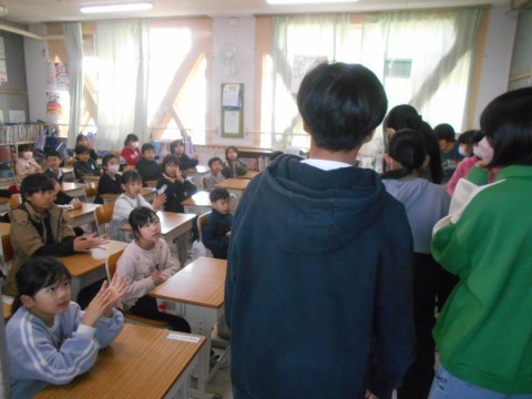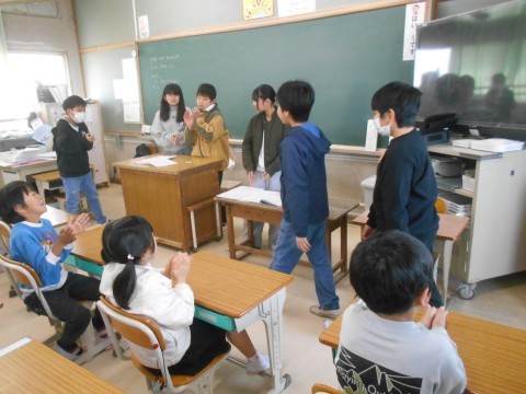 今日は「6年生を送る会」バージョン。6年生を拍手で迎え入れていました👏