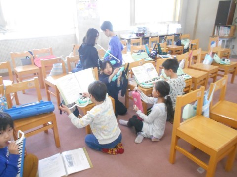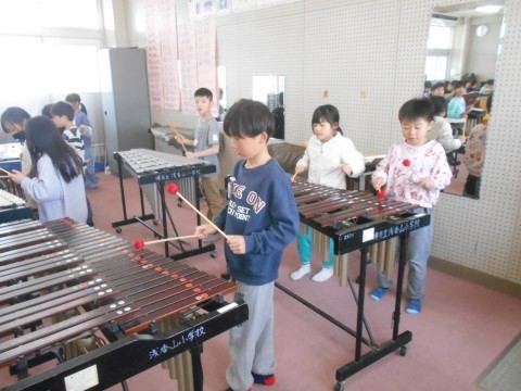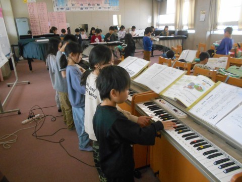 音楽の時間です。色々な楽器に触れていました♪